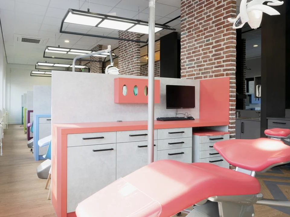Uitgangspunten voor de nieuwe praktijk waren; veel licht in de ruimtes, juiste ergonomie, aandacht voor privacy en maximaal gebruik van de hoogte van het pand. E Build nam dit Turn-Key project van ontwerp tot realisatie en inrichting op zich. De casco ruimte van bijna 400 M2 werd in korte tijd veranderd in een moderne orthodontiepraktijk.